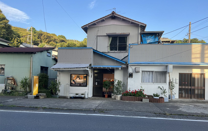 当店のある建物となります。玄関の横に看板もございます。